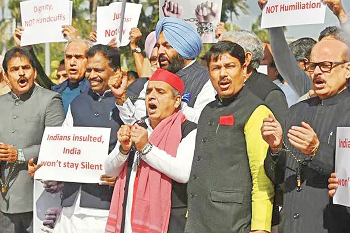 তাদের অভিযোগ, যুক্তরাষ্ট্রের সঙ্গে নতজানু নীতিতে চলছে ভারতীয় সরকার। গত বৃহস্পতিবার নয়াদিল্লিতে ভারতের পার্লামেন্টের সামনে হাতে হ্যান্ডকাফ লাগিয়ে প্রতীকী বিক্ষোভ করেন ভারতের প্রধান বিরোধী দল কংগ্রেসের নেতা রাহুল গান্ধী।
