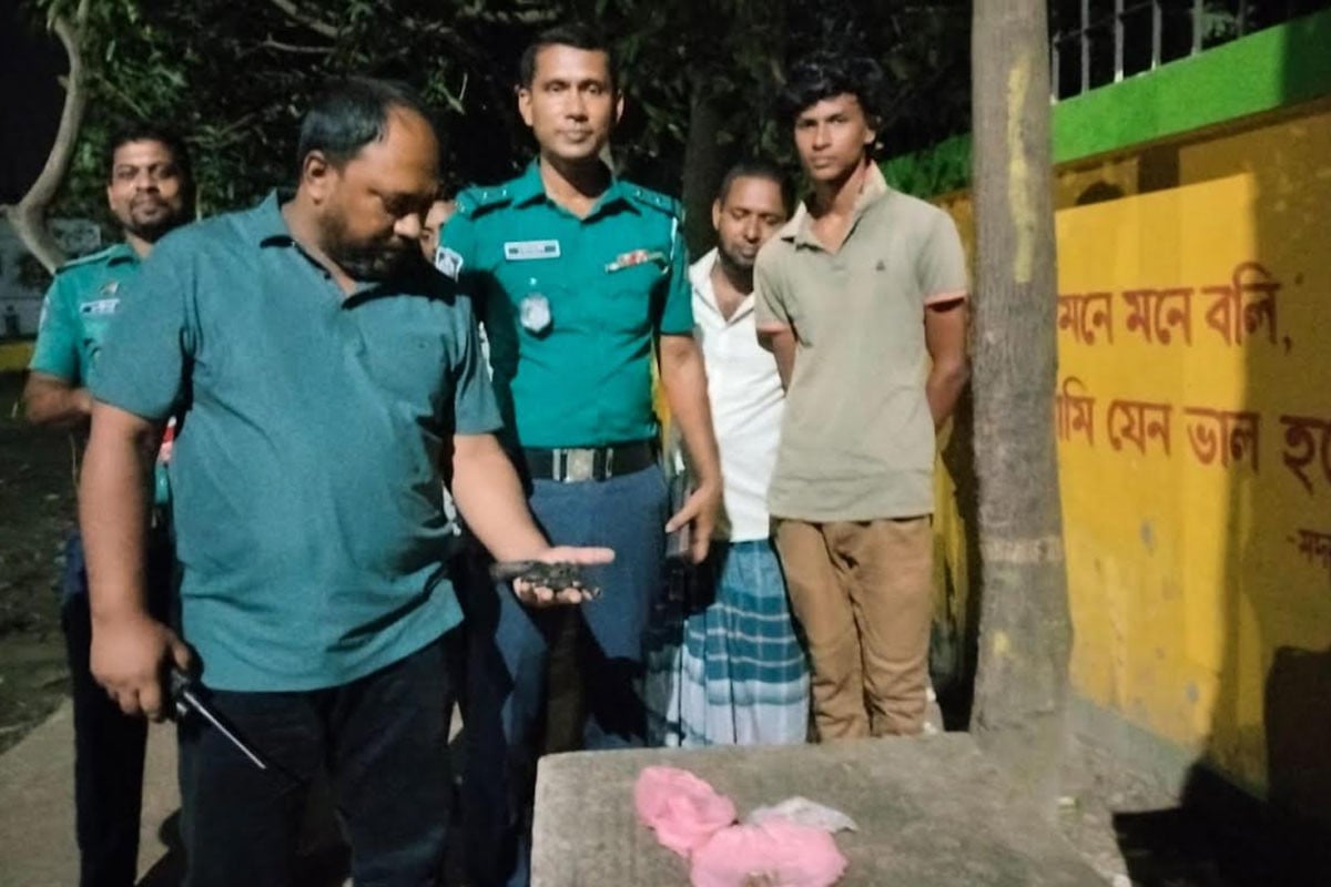 পুলিশ জানায়, সন্ধ্যায় স্কুলের ভেতরে পরিত্যক্ত অবস্থায় পিস্তল ও গুলি দেখতে পেয়ে পুলিশে খবর দেয় এলাকাবাসী। খবর পেয়ে পূর্ব থানা পুলিশের এসআই এসএম মেহেদি হাসানসহ একদল পুলিশ ঘটনাস্থল থেকে রিভলবার ও গুলি উদ্ধার করেন।