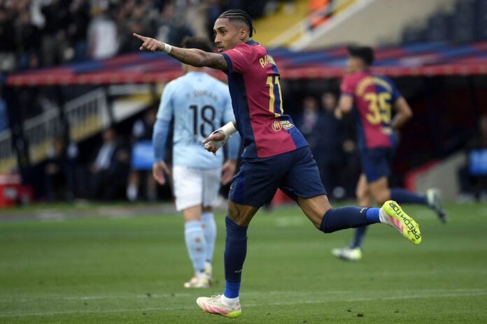 লা লিগায় রোমাঞ্চকর এক ম্যাচে ৩-১ গোলে পিছিয়ে পড়েও দুর্দান্তভাবে ঘুরে দাঁড়িয়ে ৪-৩ গোলের জয় তুলে নিয়েছে বার্সেলোনা। যোগ করা সময়ে করা রাফিনহার পেনাল্টি গোলই নিশ্চিত করেছে কাতালানদের গুরুত্বপূর্ণ তিন পয়েন্ট।